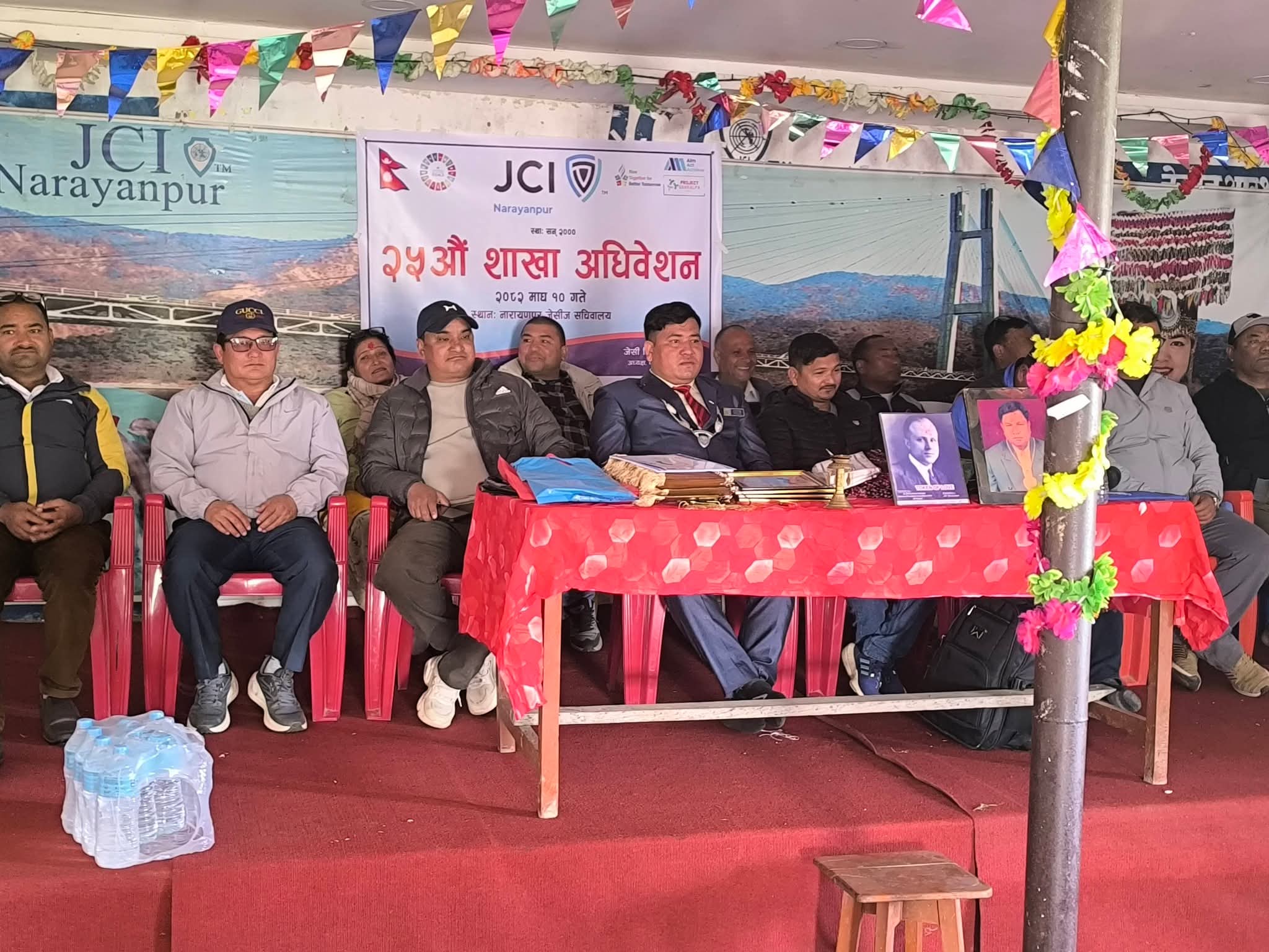 नवनिर्वाचित अध्यक्ष संगित शाहीले शाखाको महासचिवमा विकास रावल ,कानुनी सल्लाहकारमा रोमित चौधरी काेषाध्यक्षमा निरञ्जन रावल र बोर्ड अफ डाइरेक्टरमा शंकर के.सी. लाई मनाेनित गरेको जानकारी दिए । नारायणपुर जेसिज वर्ष २०२५ का अध्यक्ष दिलिप बुढाको अध्यक्षतामा भएको कार्यक्रममा नेपाल जेसिजका राष्ट्रिय उपाध्यक्ष रुपक विष्ट प्रमुख अतिथि रहेका थिए ।