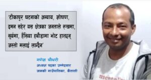 ‘टीकापुर घटनाकै बेला हेर्ने हो भने भदौ ७ गतेको घटनालाई आपराधिक बनाइयो र त्यसको प्रतिसोधमा ८ गते भएको घटनालाई आपराधिक देखिएन’ उनले भने । राज्यले जुन विभेद गरिरहेको छ । त्यो विभेद, अन्याय, अत्याचार विरुद्ध न्यायका लागि म राजनीतिमा लागेको हो ।