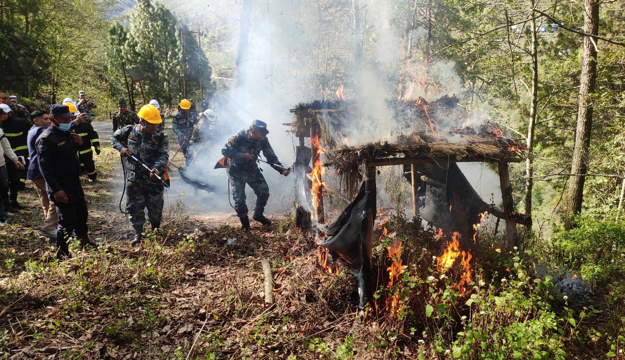 रसुवा/ डिभिजन वन कार्यालय रसुवाको आयोजनामा ०८२ चैत १० र ११ गते धुन्चेमा वन डढेलो नियन्त्रण तथा व्यवस्थापनको लागि अनुशिक्षण र नमुना अभ्यास सम्पन्न भयाे ।