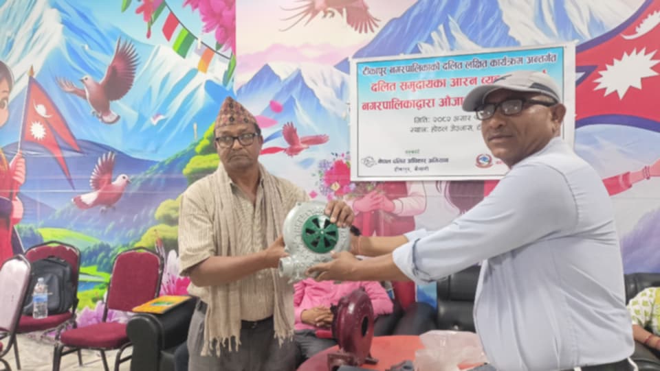 आरन व्यवसायीलाई सामाग्री वितरण